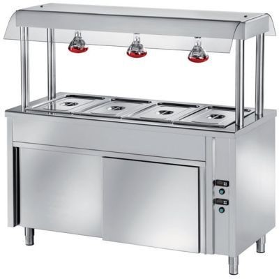 "Elemento bagnomaria isola centrale. vasca raggiata h200 per gn1/1 h150 (bacinelle escluse), cap. 3 gn1/1, vano inf. caldo. mensola dotata di vetro e 3 lampade risc., mm 1200x700x1500h" su Ristormarkt - Spedizioni in tutta Italia mezzo Corriere Espresso. Scopri altri prodotti nella categoria: