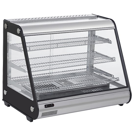 Le vetrinette sono realizzate completamente in acciaio inox 18/10, sono dotate di vetro frontale temperato, porta di servizio su guide ad apertura totale, ripiano grigliato intermedio estraibile e dispositivo di ventilazione anti appannamento.