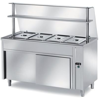 "Tavolo caldo self-service vano inferiore armadiato neutro con scorrevoli - vasca raggiata h 200 - bagnomaria bacinelle gn escluse mm 1500x700x1400 h + vetro curvo temperato" su Ristormarkt - Spedizioni in tutta Italia mezzo Corriere Espresso. Scopri altri prodotti nella categoria: